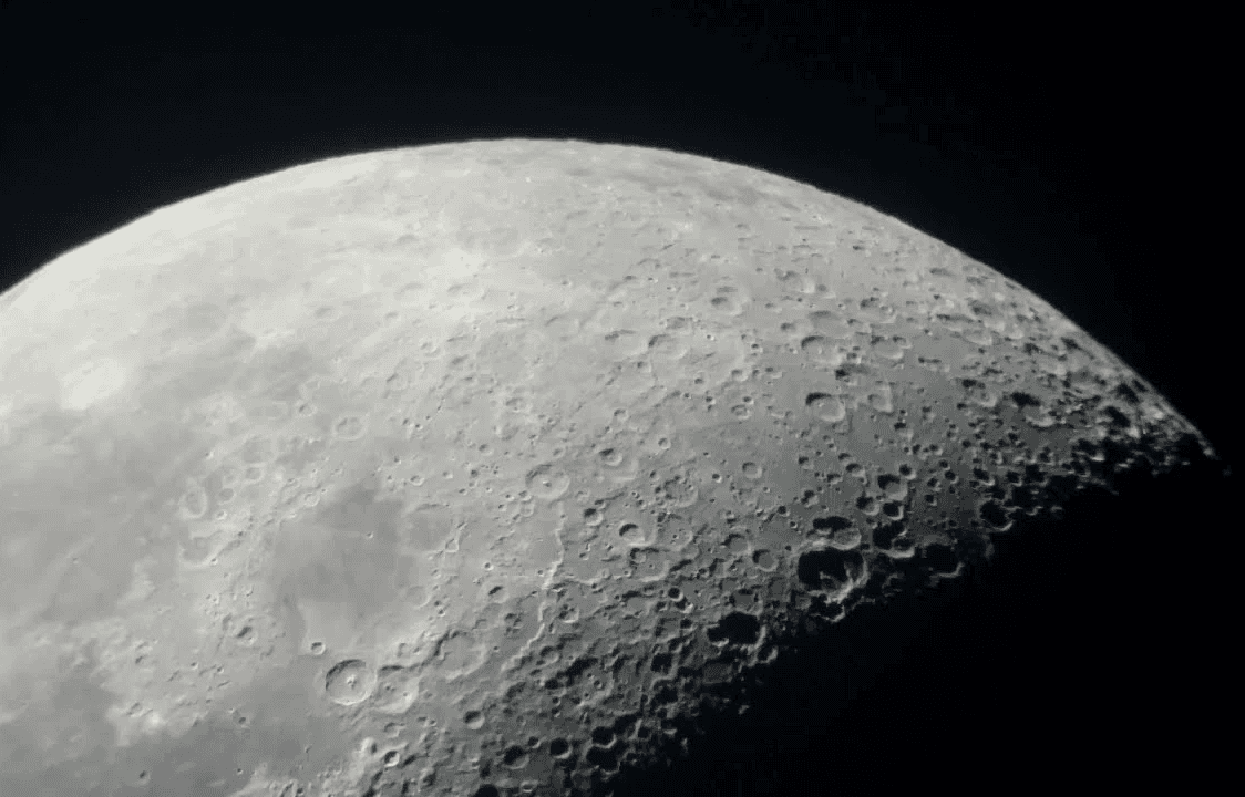The Moon looks more three-dimensional, and surface texture becomes noticeable with visible crater edges.